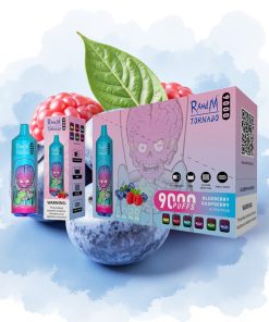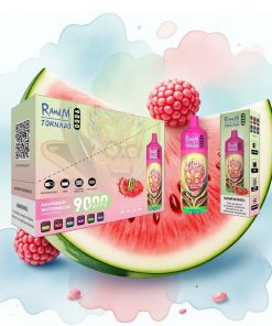 RandM Tornado 9000 Puffs 850 mAh Jordbær Bringebær Kirsebær Is